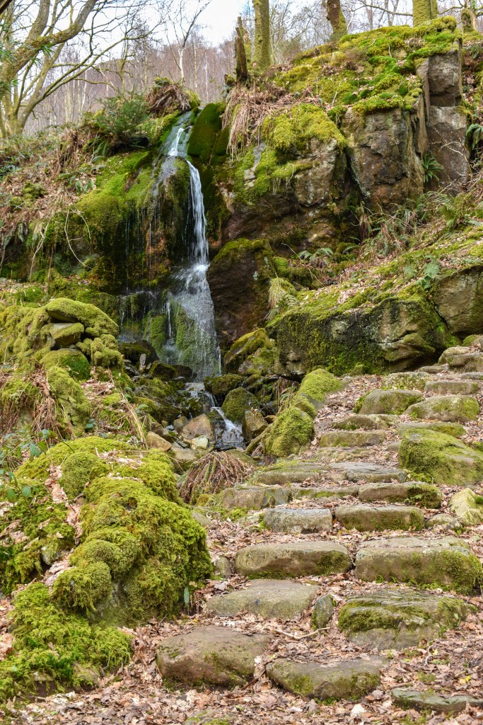 Begin your hike at the Craflwyn National Trust car park and take the footpath leading through the woodland. When you reach the fork in the path, follow the black arrow waymarker to the right. Walk past the dragon bench, and then ascend the steps with a small waterfall on your left. At the top of the steps, follow the path to the right, through birch trees and into a clearing. Keep moving forward, following the black arrows and ignoring the two paths that lead to the right.