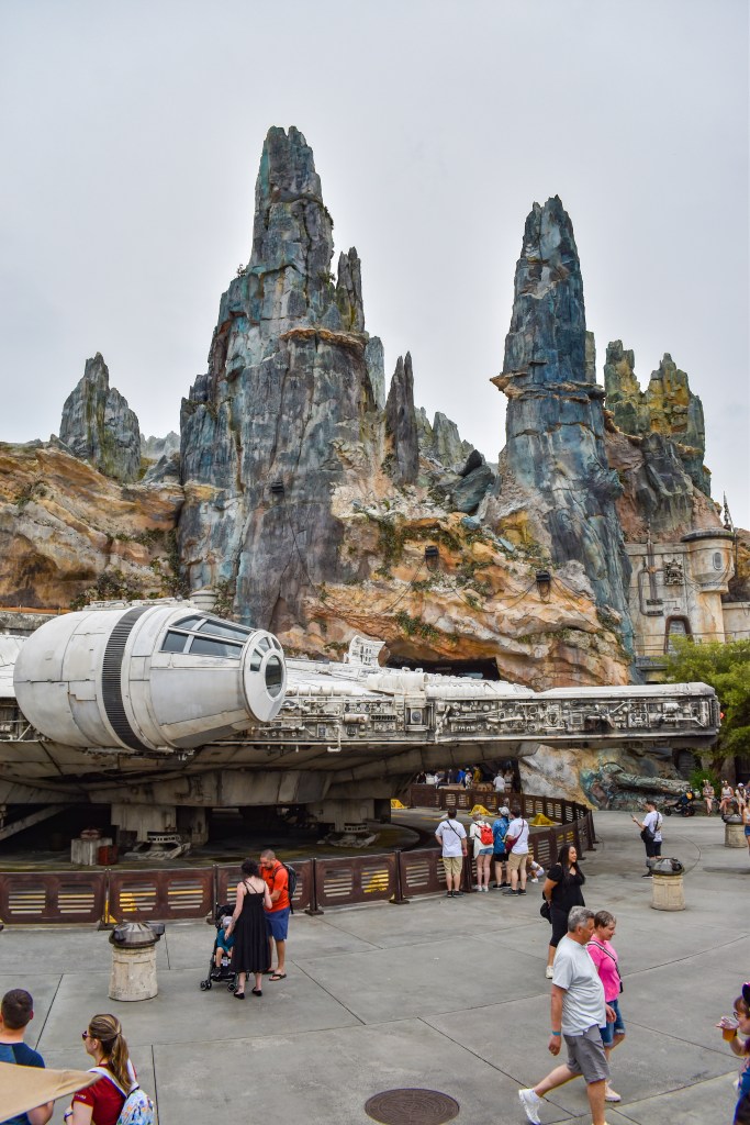 We arrived just after park opening and our first ride of the day was Star Wars Star Tours as it was only a 5min wait. Wearing our matching Muppets T-shirts, we headed to Muppet Vision 3D to catch one of the final shows before the area is sadly set to be demolished. After that, we wandered through Star Wars: Galaxy’s Edge, soaking up the incredible attention to detail Disney has poured into every corner. We joined the queue for Smugglers Run and we got lucky with Pilot roles, it was such a thrill to actually steer the ship!