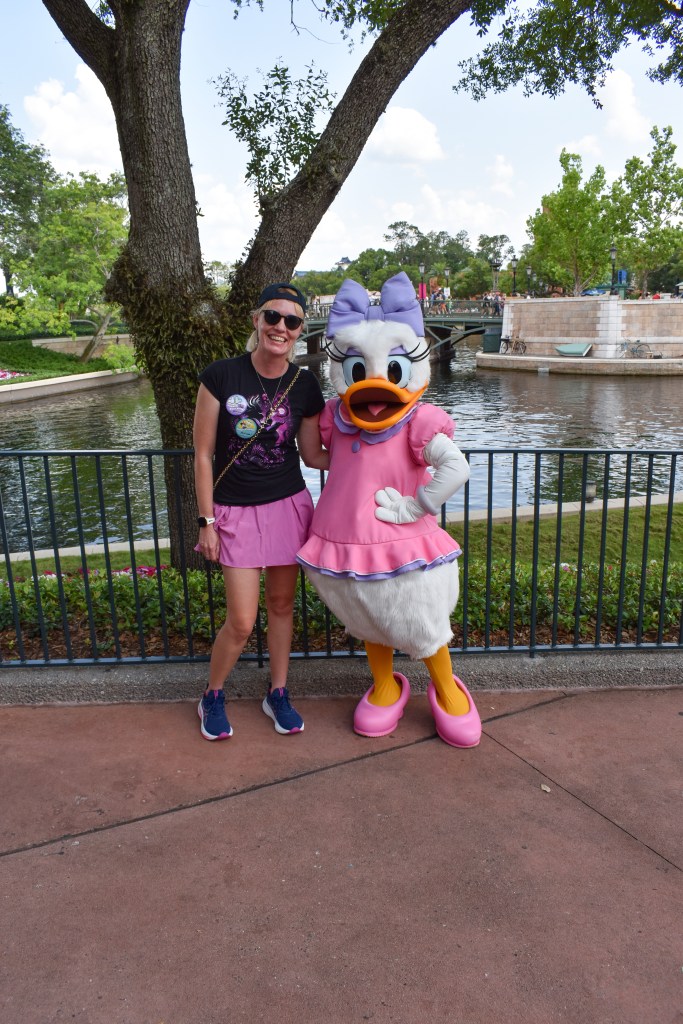 We continued onwards, walking through all the shops in China, Germany, Italy until we stopped for lunch at Regal Eagle Smokehouse, where we enjoyed pork ribs and a specialty cocktail of Tennessee Lemonade. After lunch we continued through Japan, Morocco, France, UK and Canada. We were lucky enough to find Daisy and get some photos with her. There are heaps of shows to watch in EPCOT, including Reflections of China, Beauty & the Beast Singalong, Canada Far & Wide, Short Animation Films.